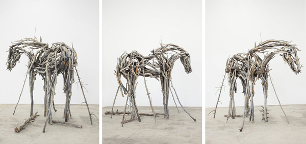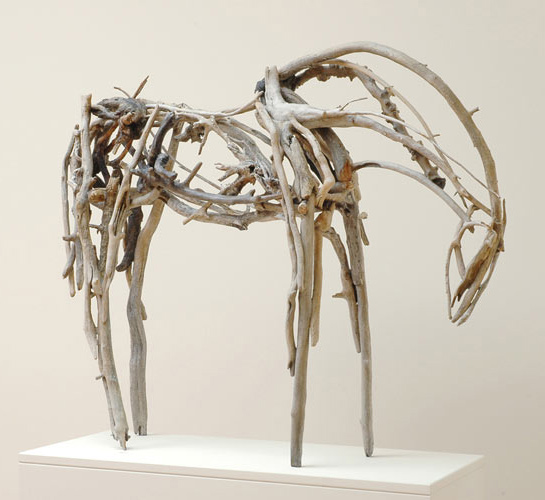 These beautiful driftwood sculptures are by artist Deborah Butterfield who specialises in sculptures of horses made from found materials. She began her career working with scrap metal and cast bronze in the early 1980s whereby wood was used initially for prototypes to see how the materials would fit together. She only works in the winter and pieces take between 3-5 years to make. These images are from a recent exhibition at L.A. Louver Gallery in California.