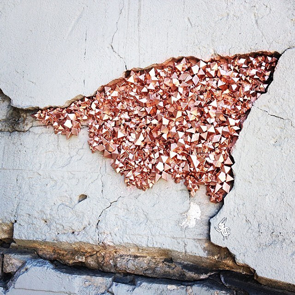 Los Angeles based artist Paige Smith aka A Common Name has installed crystal geodes into quiet, hidden corners of the globe. Made from folded paper and cast resin, her crystalline art installations have graced the streets of Bali, Madrid, Istanbul, Philadelphia and San Francisco. Smith has also set up a beta program where other artists are invited to install geode art in other parts of the world. These stunning manmade but seemingly natural formations emerging out of bricks, drains and even phone booths are designed to highlight the tension between nature and industry.